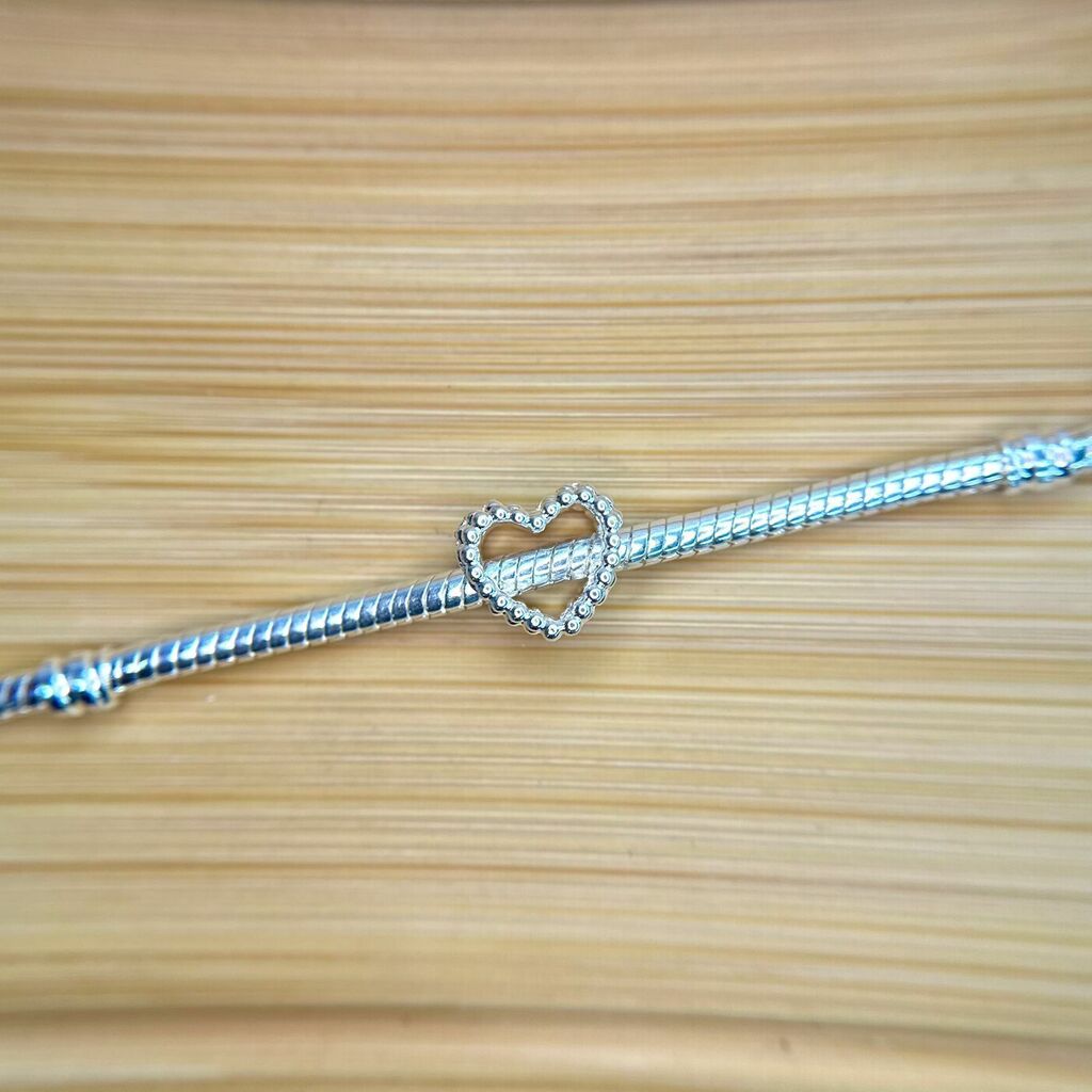 Com um design romântico e minimalista, o berloque separador coração vazado é perfeito para dar equilíbrio e charme à sua pulseira. Além de embelezar, ele ajuda a organizar os demais berloques, destacando cada detalhe da sua composição. Banhado a prata, é uma peça versátil e cheia de significado.