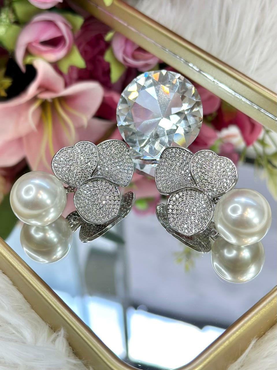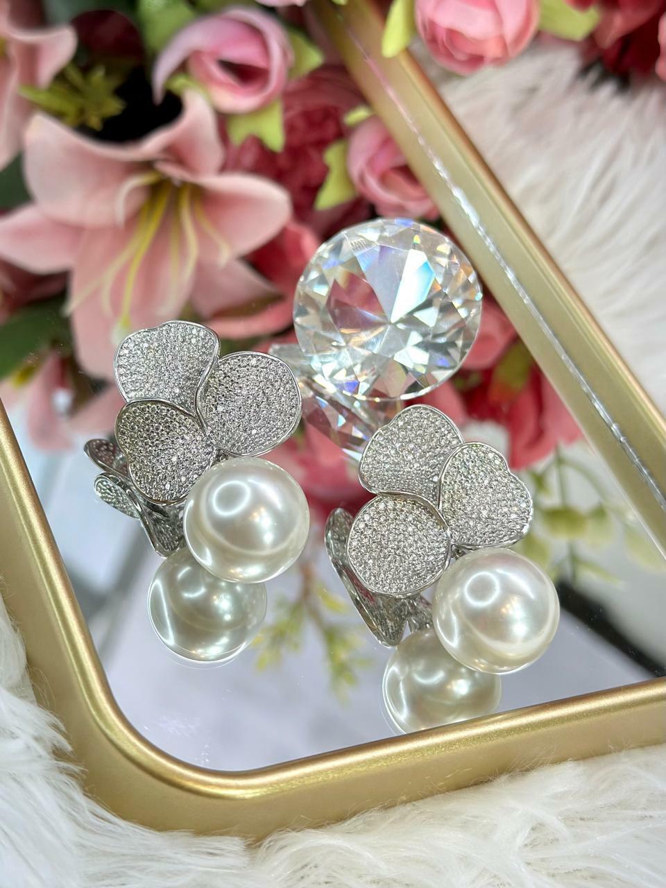 Este brinco de festa é a escolha perfeita para noivas, madrinhas, debutantes e para qualquer evento que exija elegância e brilho. Com um design delicado em forma de flor, ele combina a sofisticação das pérolas com o brilho das pedrarias em zircônias, criando um visual deslumbrante e cheio de charme.